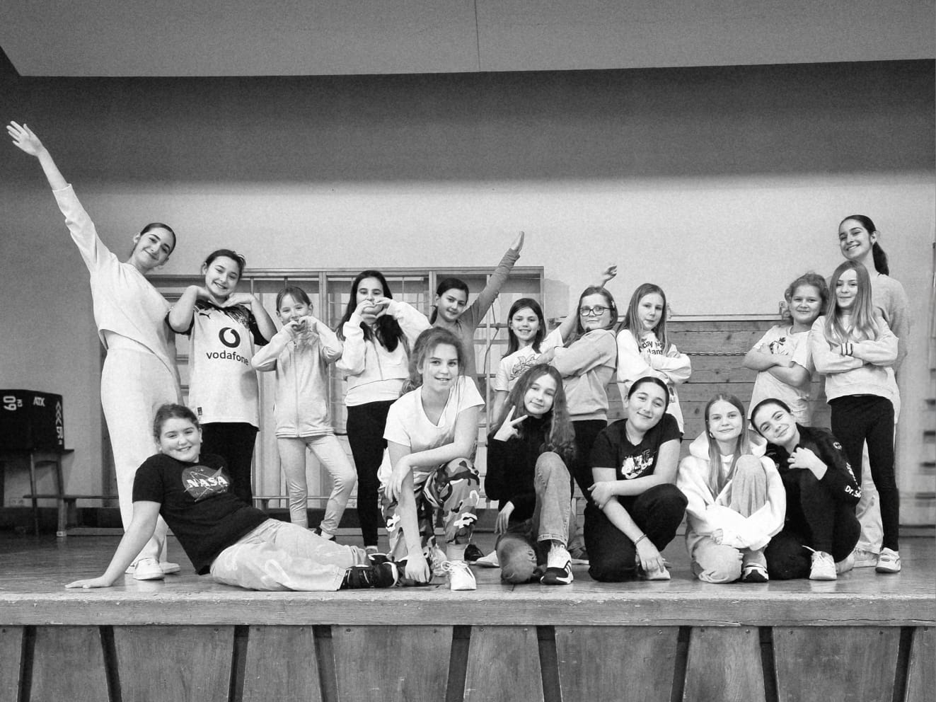 Wir sind 14 Mädels zwischen 9 und 12 Jahren und haben alle unterschiedliche Hintergründe, doch der Tanz verbindet uns. In unserem Training lernt man sowohl spielerisch als auch sachgerecht neue Choreographien, erstellt selbst ein paar und man bewegt sich im Freestyle zur Musik. Wir haben immer den Teamgeist und das Vertrauen im Mittelpunkt, sodass jeder auf seine Weise über sich hinaus wachsen kann!